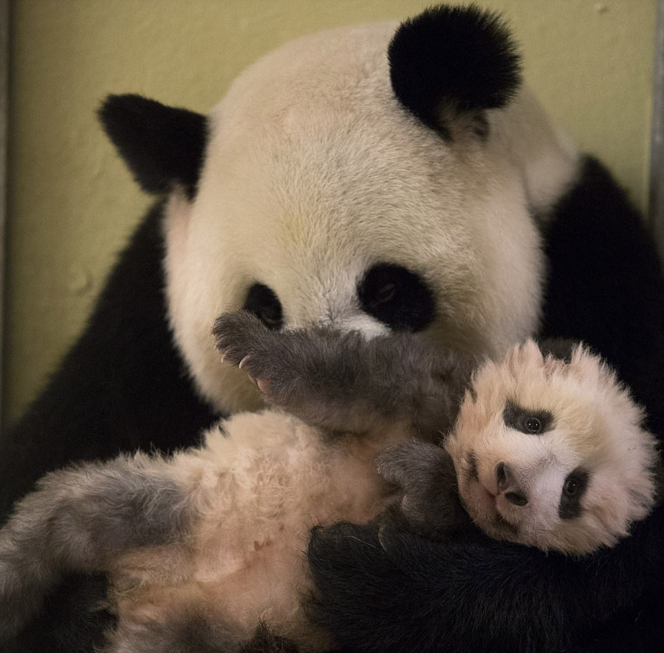 “欢欢”对自己的孩子疼爱有加,爱不释手