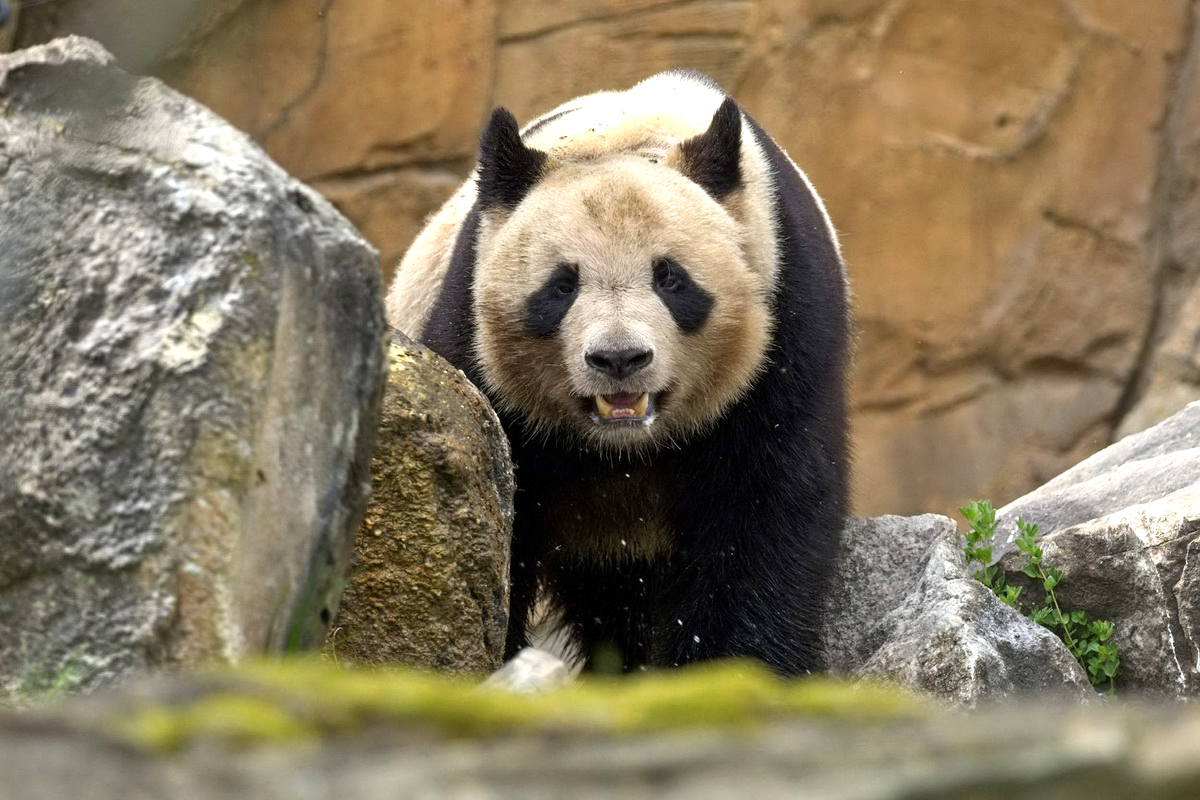 2023年5月8日拍摄的大熊猫“圆梦”。法国博瓦勒动物园图