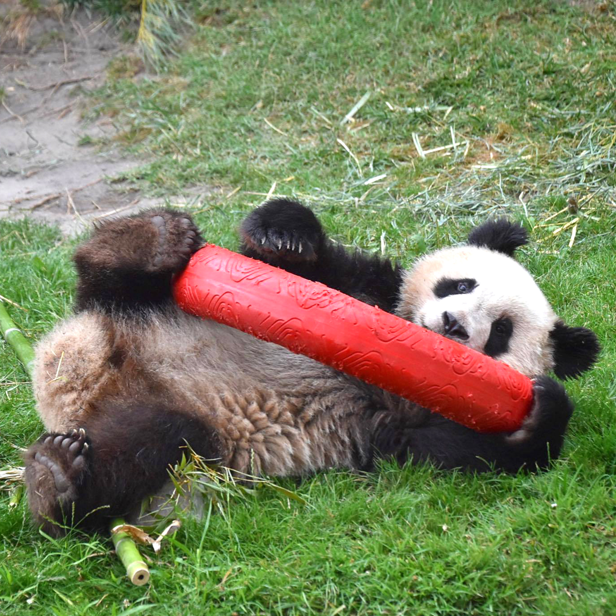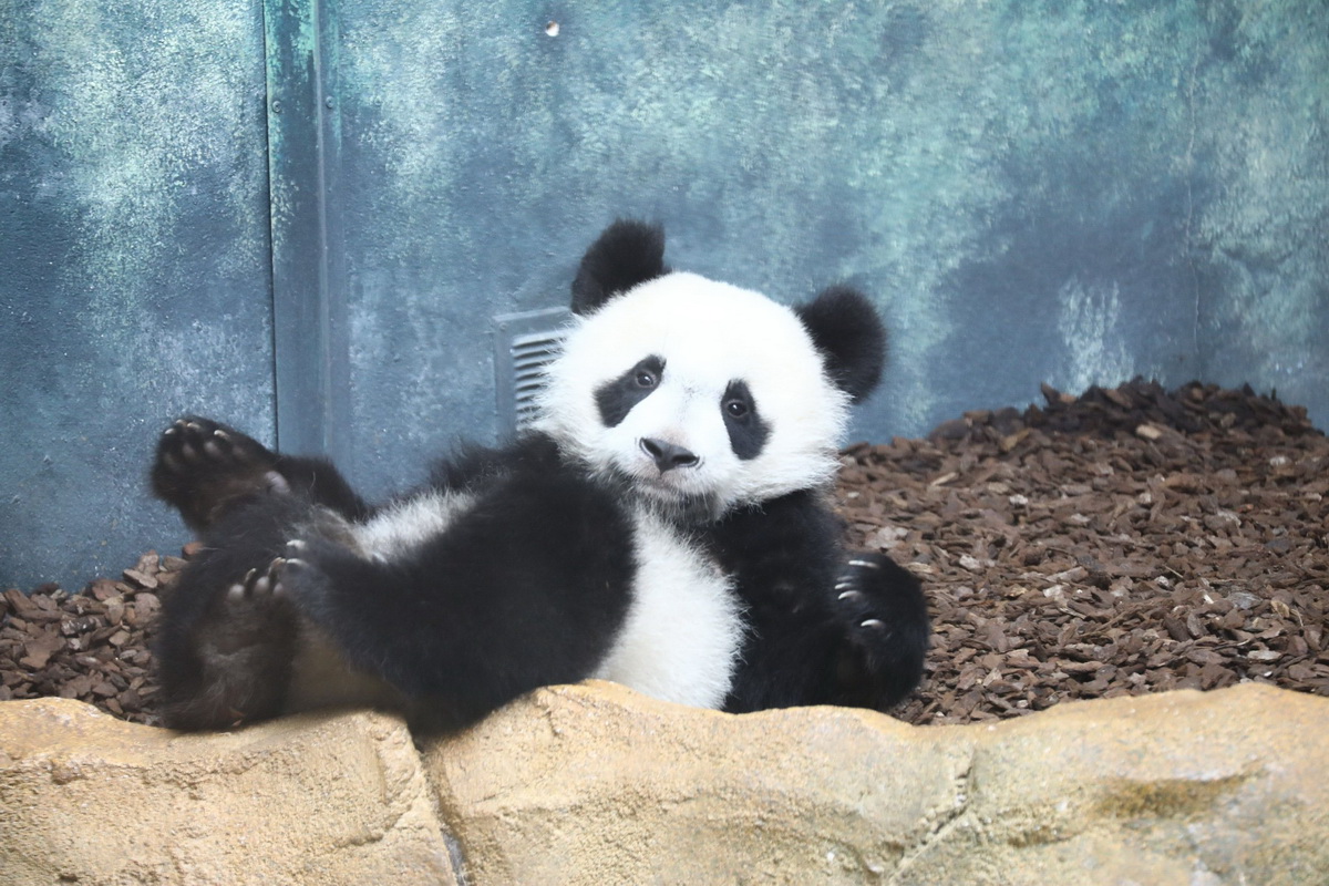 2019年8月拍摄的玩耍中的“圆梦”。©panda_mirumiru图