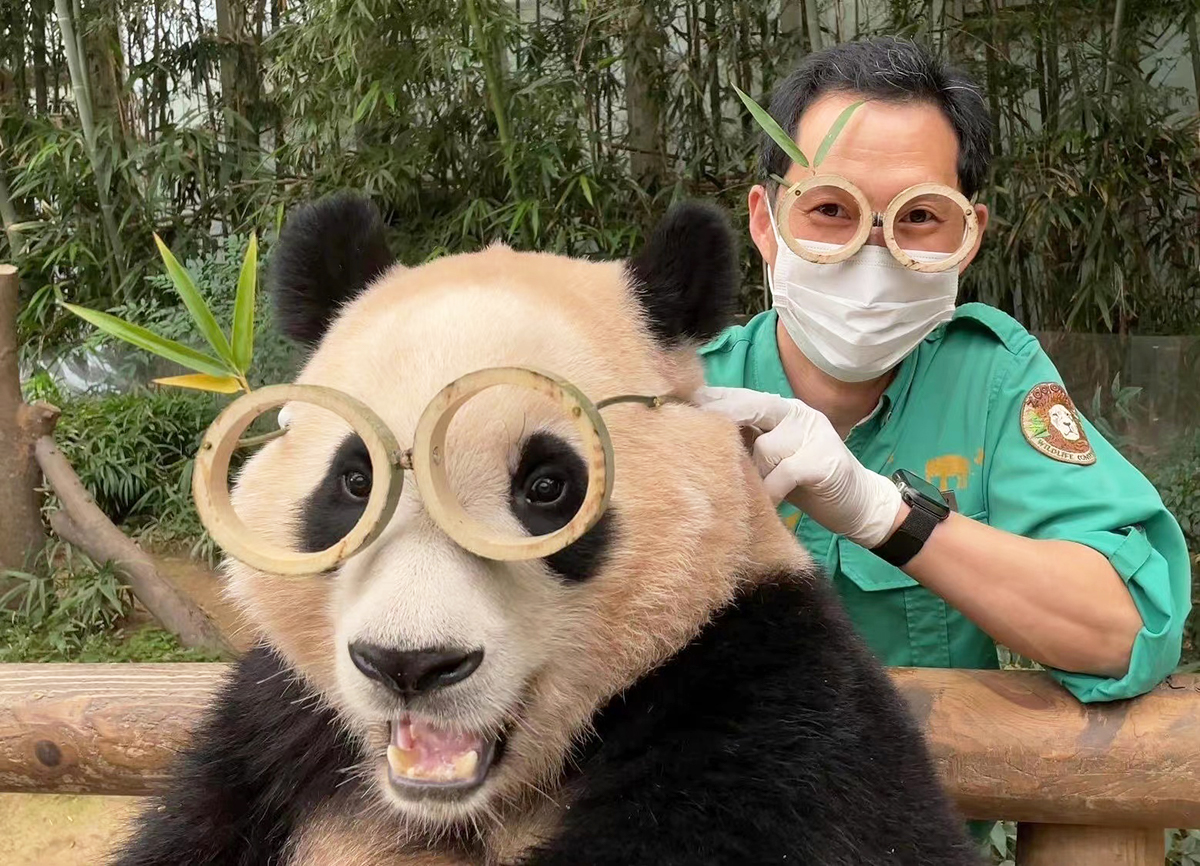 大熊猫“福宝”和饲养员姜爷爷