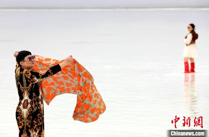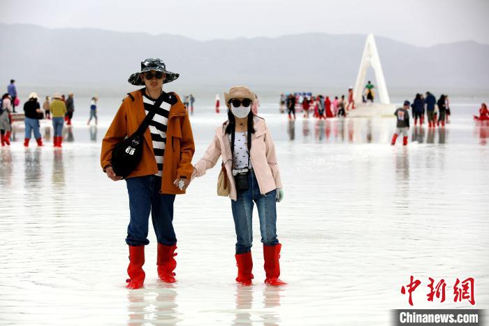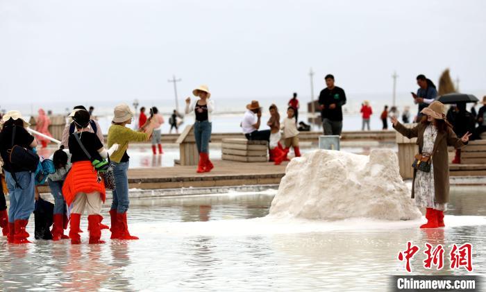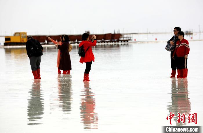 图为游客在茶卡盐湖拍照。 薛蒂摄