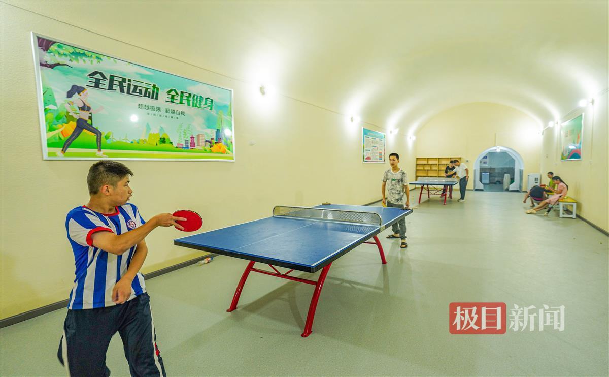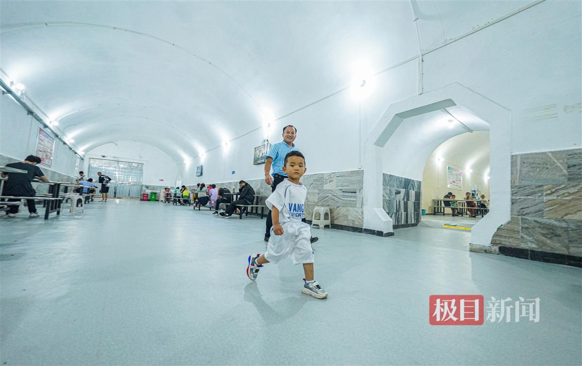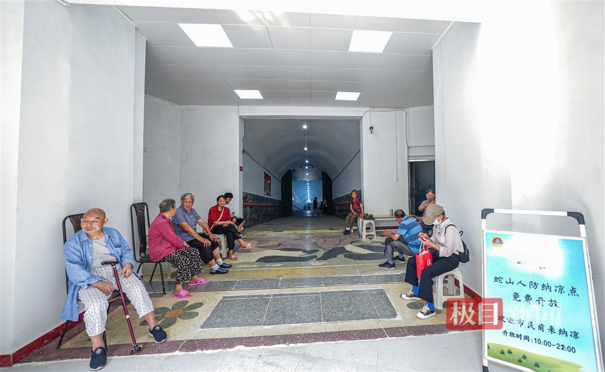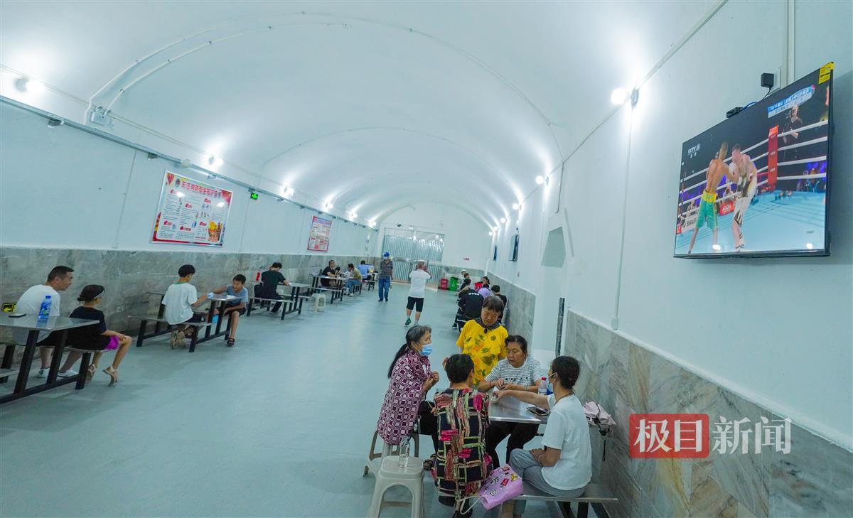 室外36℃、室内22℃,7月2日,不少市民游客在武汉市武昌区解放路后长街76号蛇山人防纳凉点,打乒乓球、遛娃、看电视、读书看报等,度过了一个舒适、精彩的周末。
