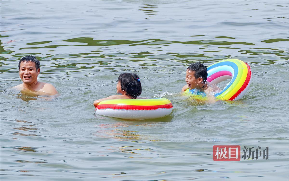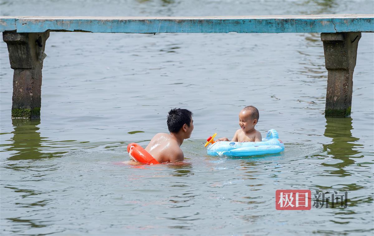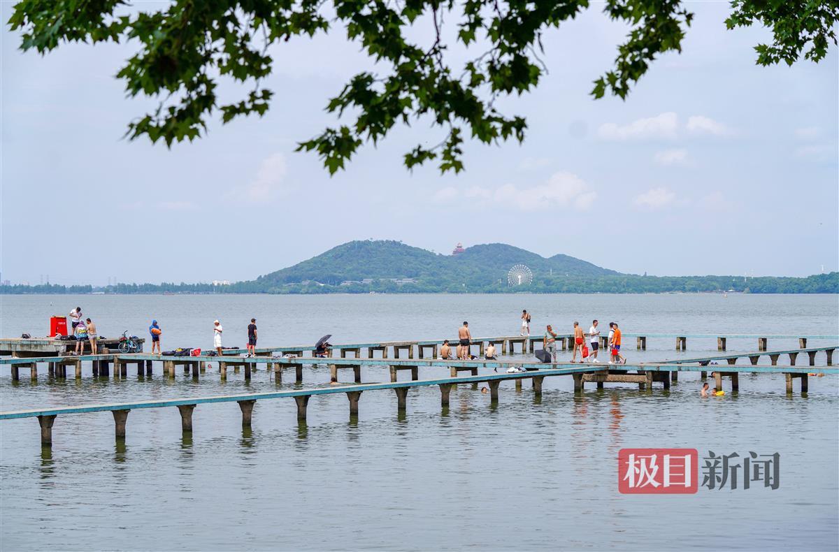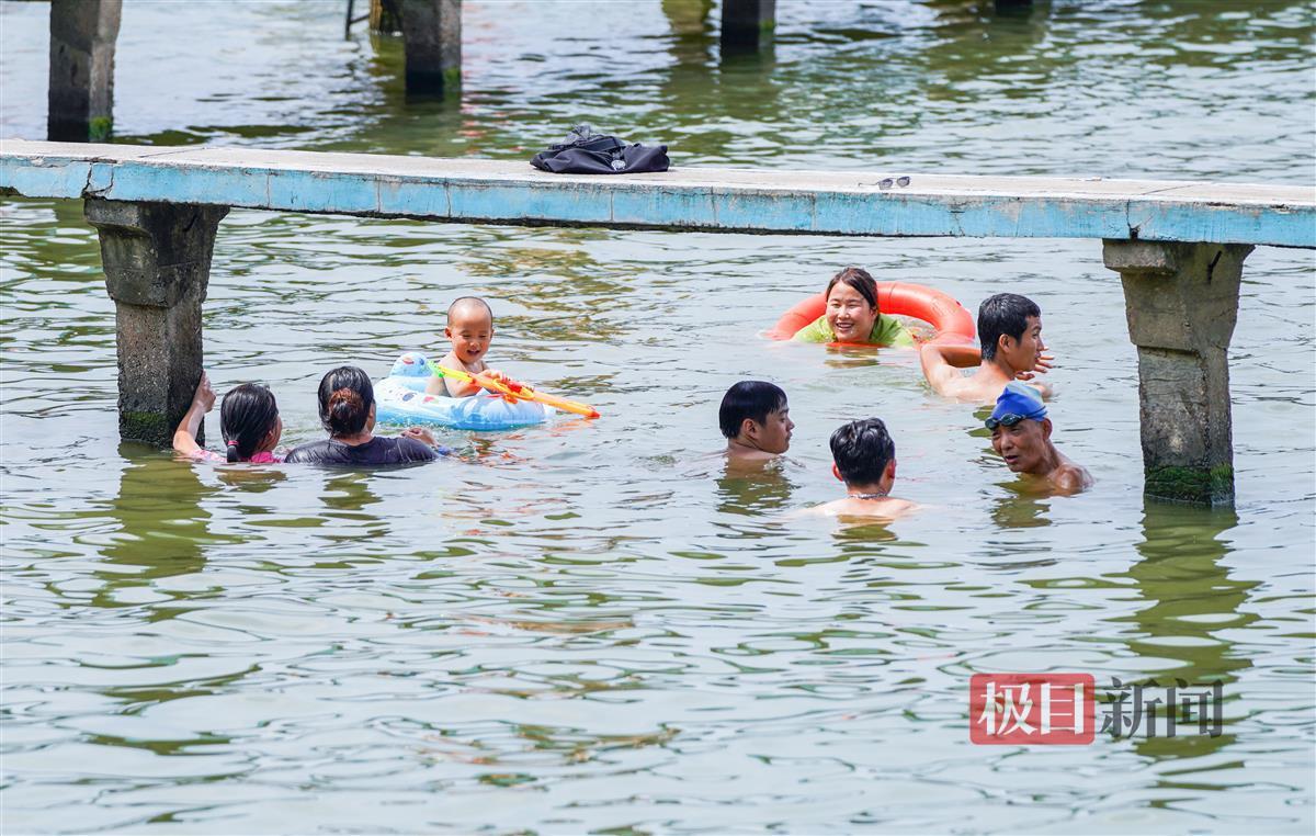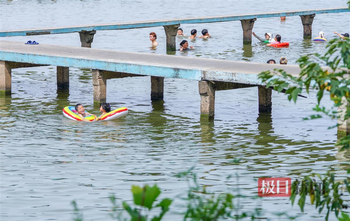 当天下午2时许,极目新闻记者现场看到,尽管此时为一天中最热的时段,但前来凌波门栈桥的市民游客络绎不绝,有的在栈桥上拍照,有的在栈桥边游泳消暑。
