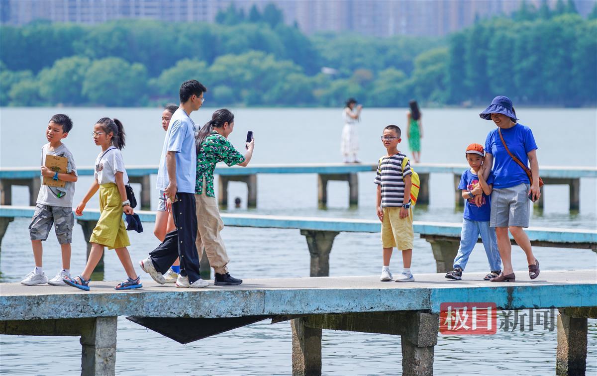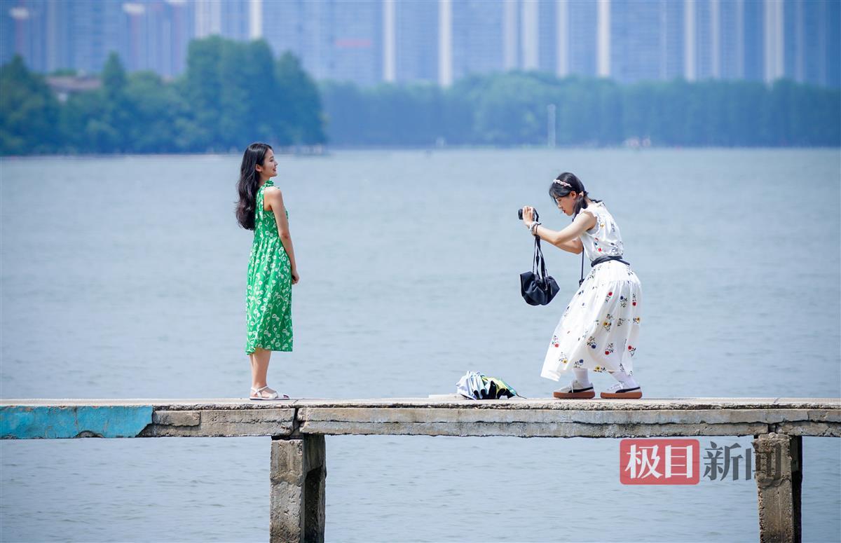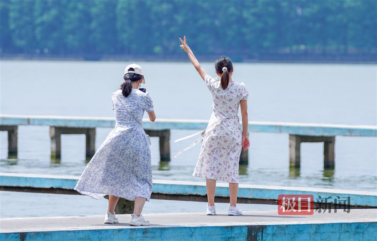 7月3日,武汉高温达36℃,但酷暑也阻挡不了市民和游客打卡东湖凌波门的脚步。