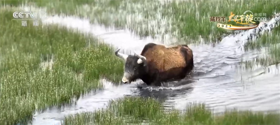 记者甚至拍到了成群的野牦牛在水中游嬉过河的画面。高原的夏日里,趟过清凉的河水,想必也算是牛生的一桩美事。牛气哄哄的野牦牛,此刻似乎多了几分惬意,少了几分“高原霸主”的威严。