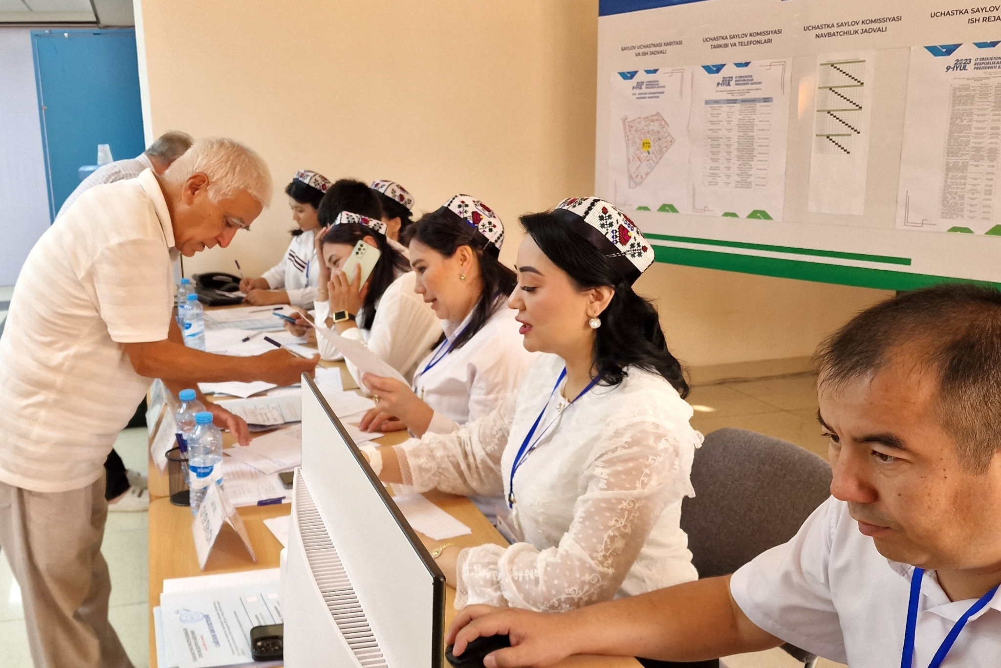 当地时间2023年7月9日,乌兹别克斯坦首都塔什干,乌兹别克斯坦总统选举投票当天8时正式开始,选民积极参与投票。这将是乌兹别克斯坦修改宪法将总统任期从5年延长至7年之后的首次总统选举。
