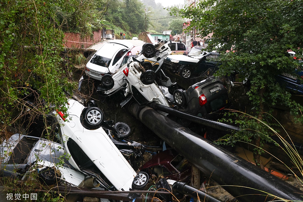 山洪过后,俄罗斯索契一片狼藉