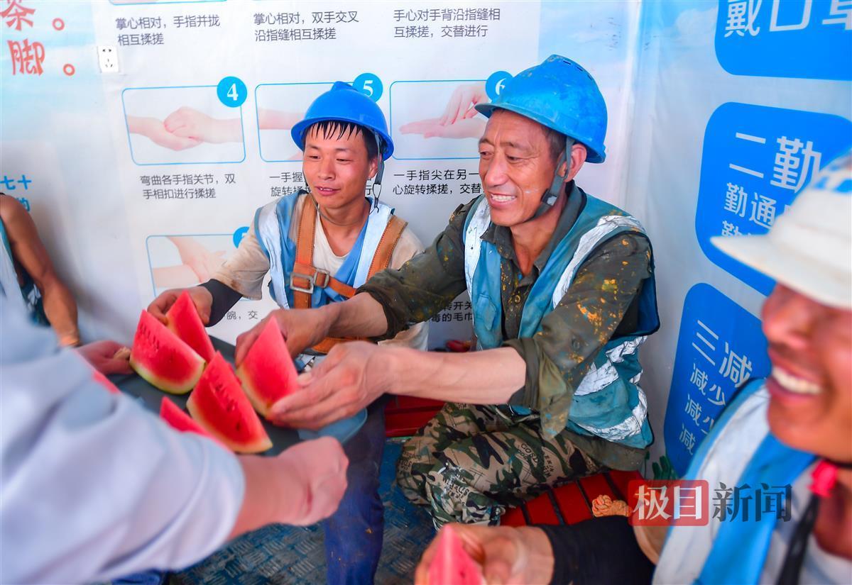 “我们的工地纳凉室约20平米,配备了条型椅、电风扇、空调、饮料机、开水机等,主要目的是为工人解暑降温。”现场负责人告诉记者,他们采用“抢两头、休中间”的作业模式,将主要施工任务调整到温度较低的早上、傍晚时段,纳凉室在防暑降温中起到了很重要的作用。