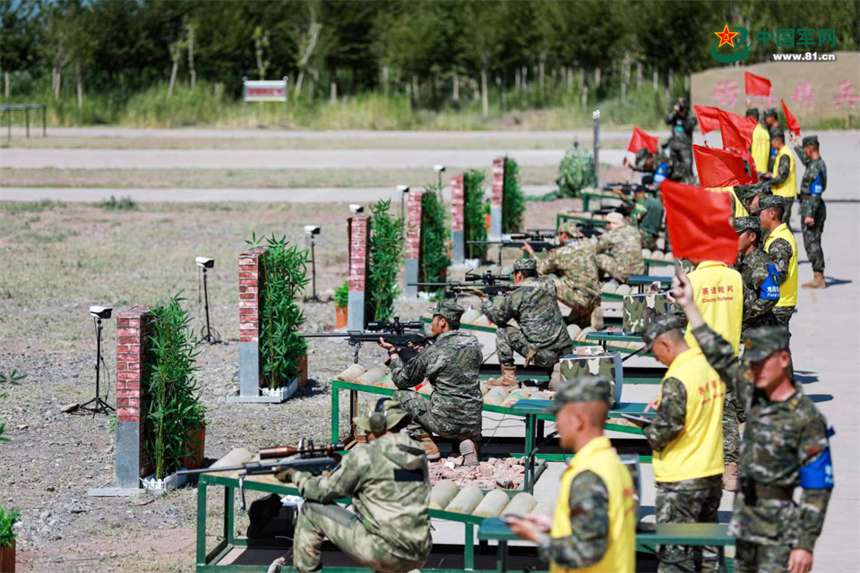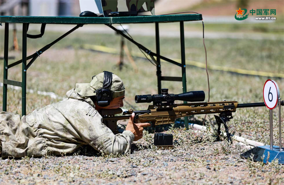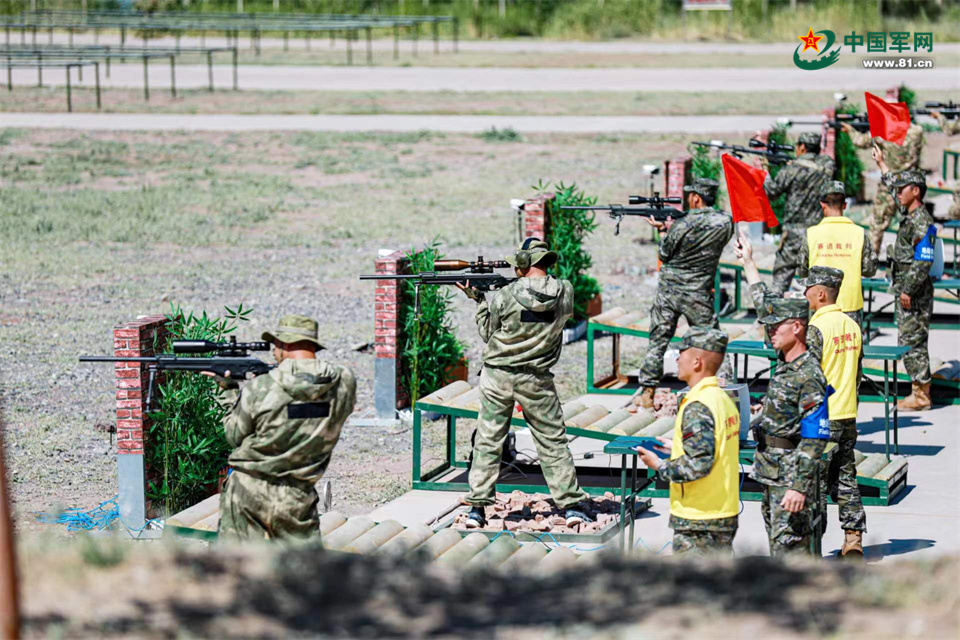 2023年7月12日,在新疆乌鲁木齐武警某训练基地,参赛队员在多种姿势狙击课目竞赛。侯崇慧摄