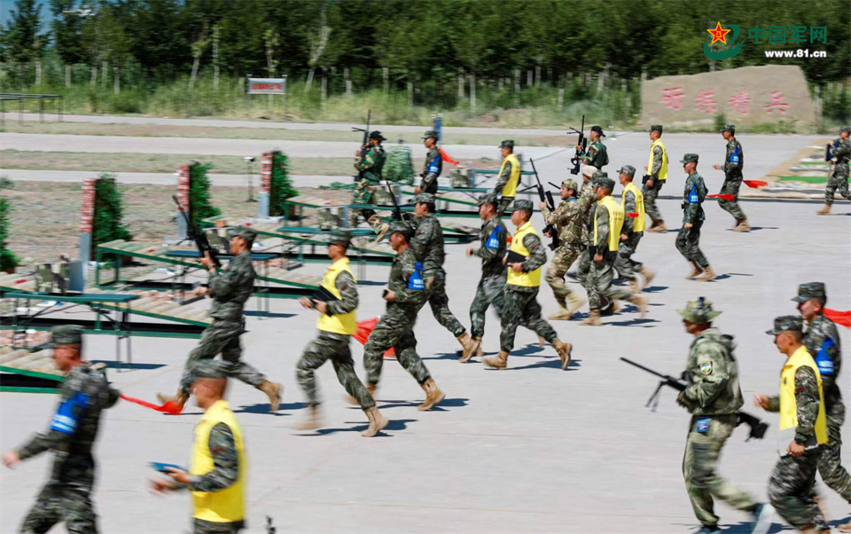 2023年7月12日,在新疆乌鲁木齐武警某训练基地,参赛队员正在进行近战精准狙击课目竞赛。侯崇慧摄