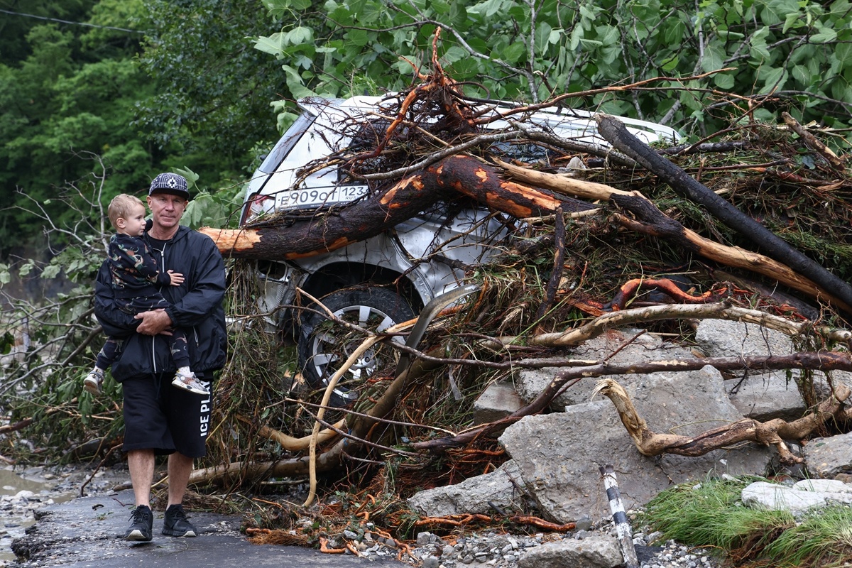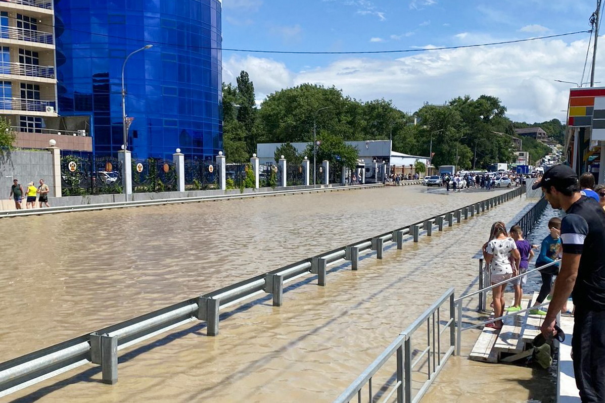 俄罗斯克拉斯诺达尔边疆区图阿普谢市暴雨引发洪水 已致4人死亡