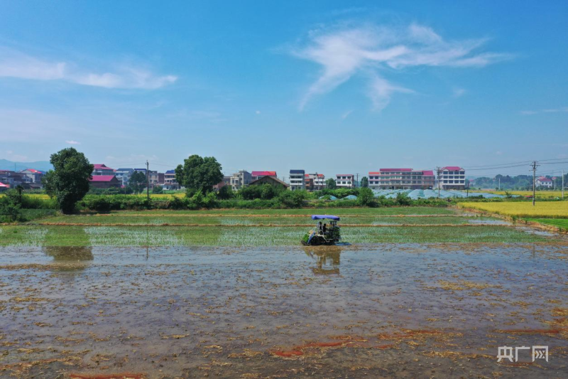 随着三伏天的到来,湖南省衡阳市衡山县进入了一年当中最为繁忙的“双抢”季节,衡山县白果镇楚南桥社区的种粮户正驾驶插秧机抢插晚稻。(央广网发戴玮摄)