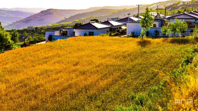 庄浪县柳梁镇周蒲村的民居与金黄色的麦田交相辉映。(央广网发张沛杰摄)