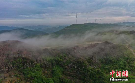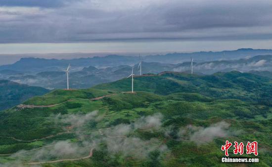 松桃苗族自治县盘石镇红石林景区风力发电场。龙元彬摄