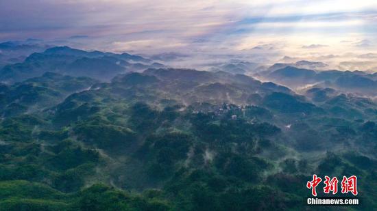 航拍贵州省铜仁市松桃苗族自治县盘石镇红石林景区。龙元彬摄
