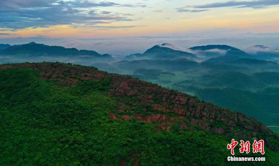 红石林景区与青山、村庄交相辉映,犹如一幅秀美的乡村诗意画卷。龙元彬摄