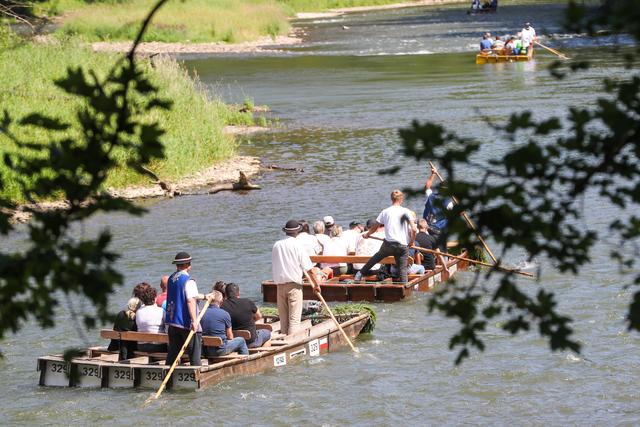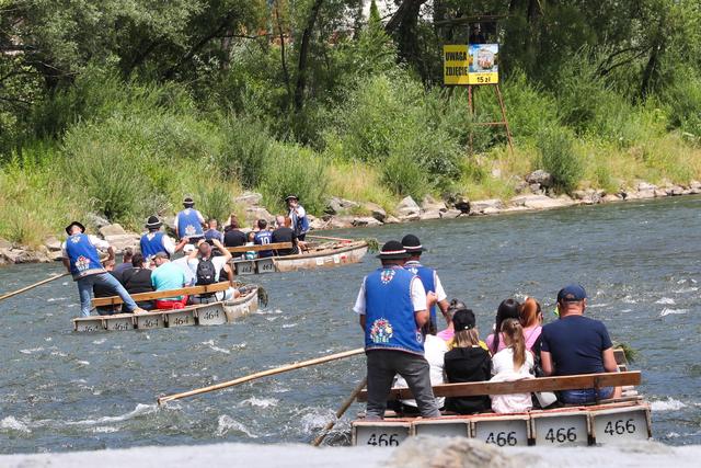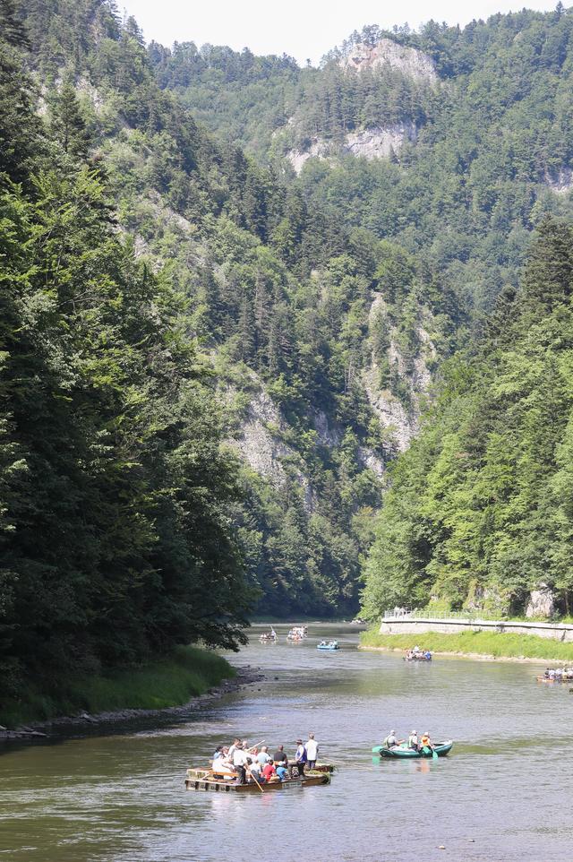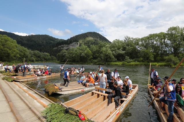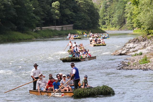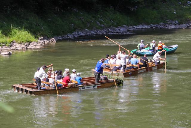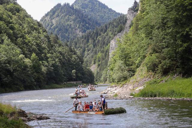7月22日,人们在波兰南部皮耶尼内山脉的杜纳耶茨河上参加传统的木筏漂流活动。新华社/欧新