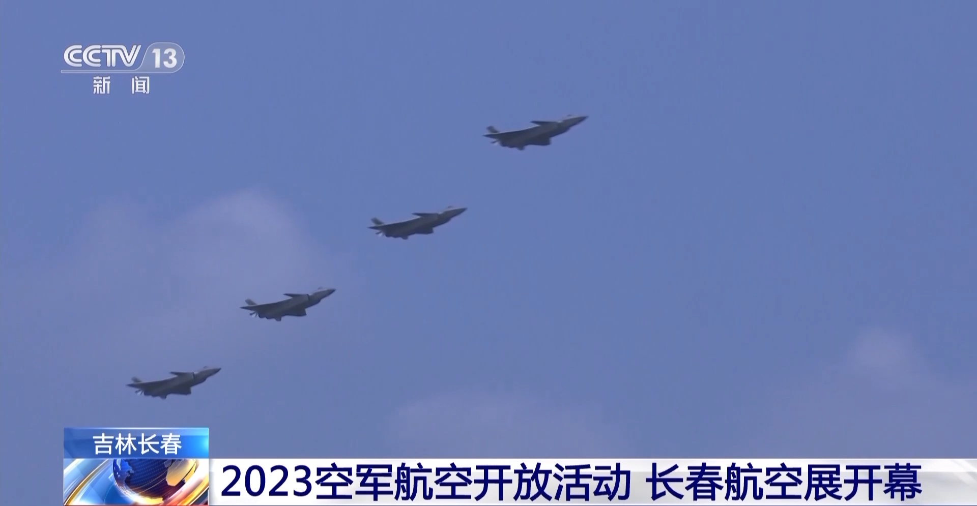 开幕式上,空军航空兵某旅驾驶4架歼-20战机也为观众们带来了震撼的飞行展示,4架战机在200米左右的高度上,完成四机钻石队形盘旋、大仰角转弯交叉脱离等动作,展示了飞行员密切协同配合能力。
