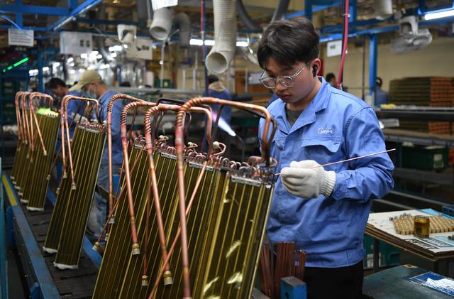 工人在美的家用空调广州工厂的生产线上工作(3月3日摄)。新华社记者 邓华 摄
