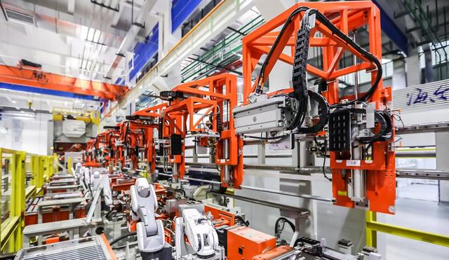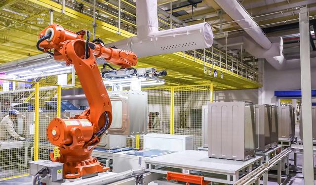 海尔青岛中德滚筒洗衣机互联工厂生产线(资料照片)。新华社发