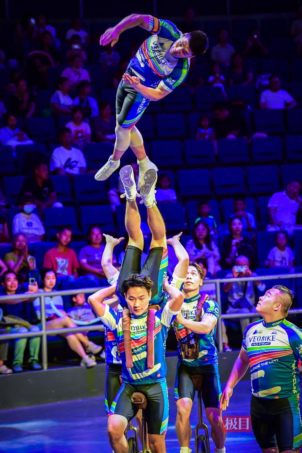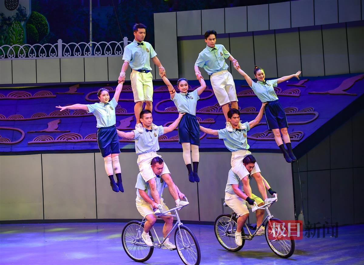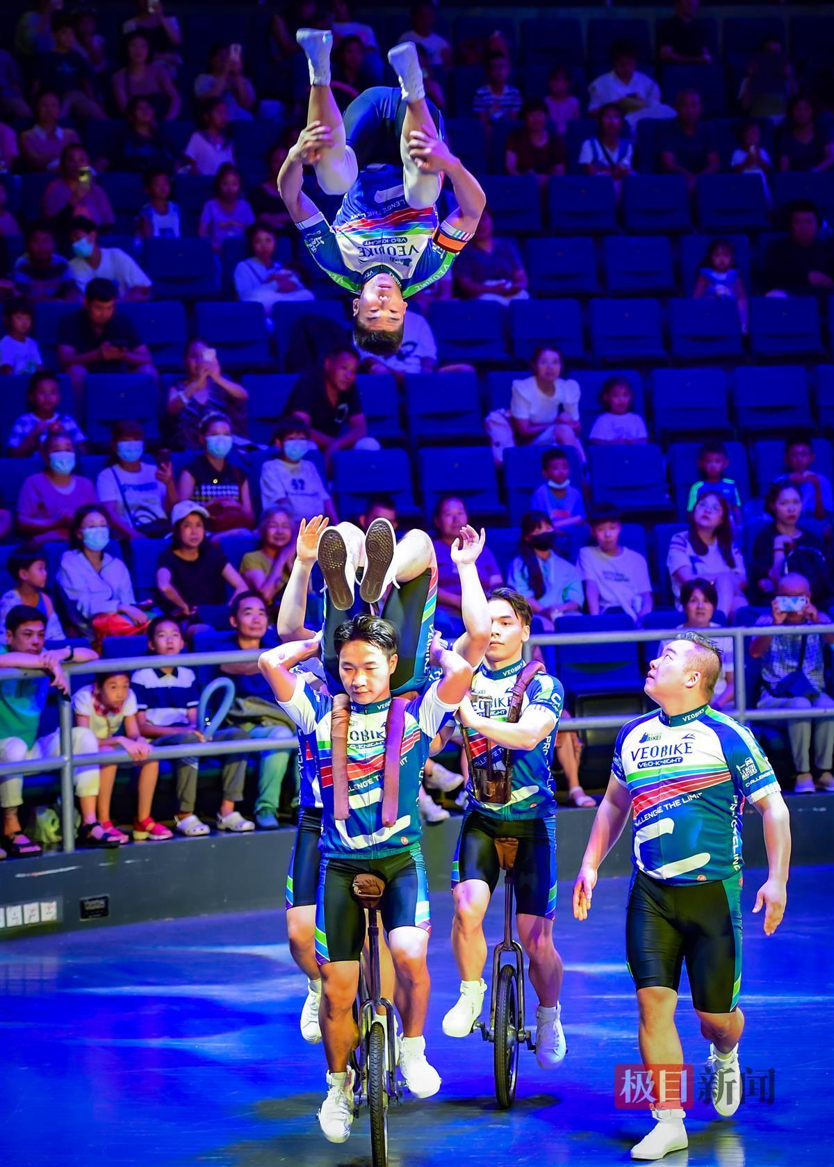 7月26日,武汉杂技厅大戏精彩纷呈,其中“女子车技”从一辆自行车到一排自行车,再到杂技经典动作“车行排楼”,最激动人心的时刻是,一辆自行车硬是驮上了10多人,在表演场所奔驰,赢得了观众阵阵热烈掌声。