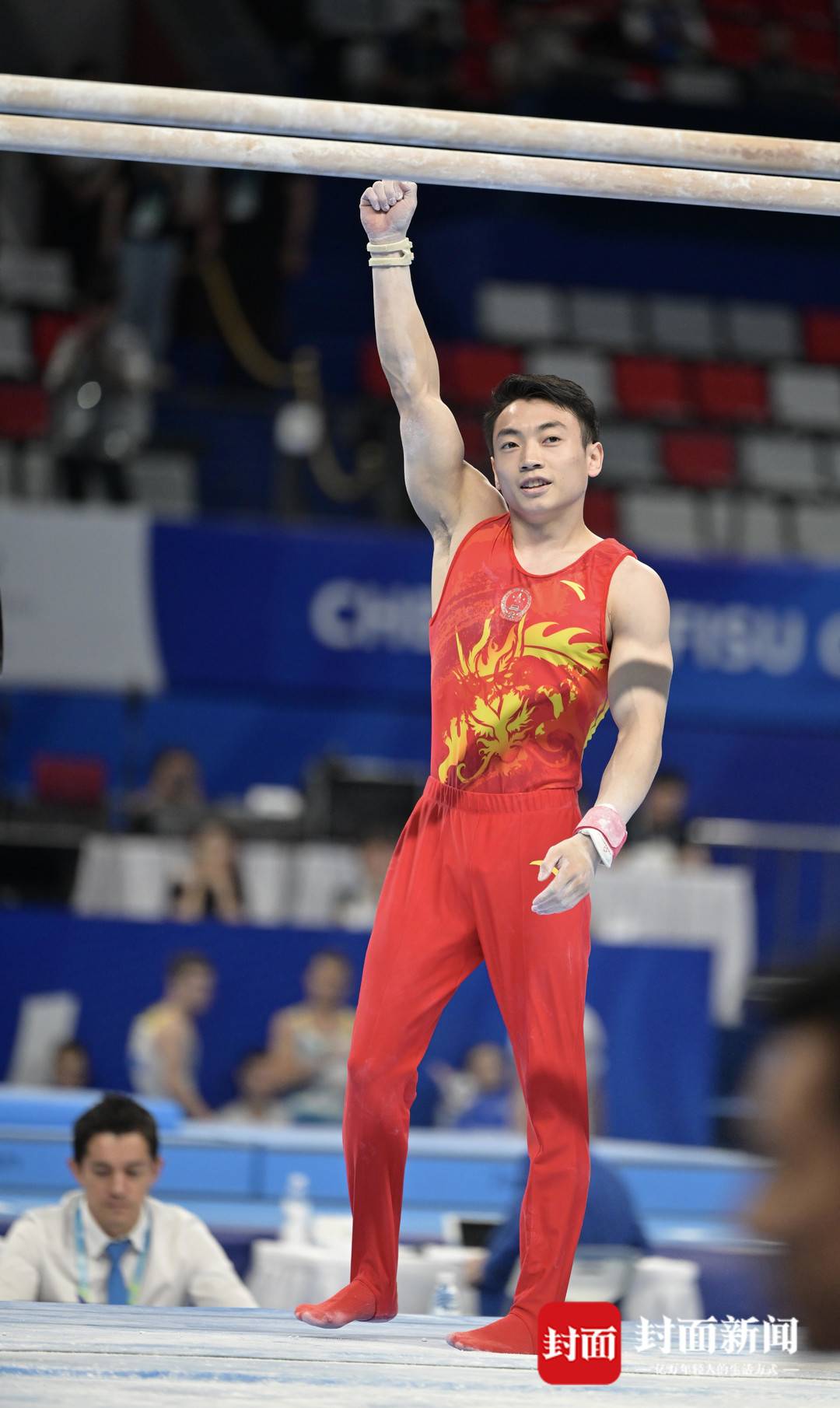8月2日,成都大运会体操男团决赛,中国体操队正式亮相。来自四川“地表最强”的体操奥运冠军邹敬园参加了鞍马、吊环、双杠项目。邹敬园父母也来到现场观战。