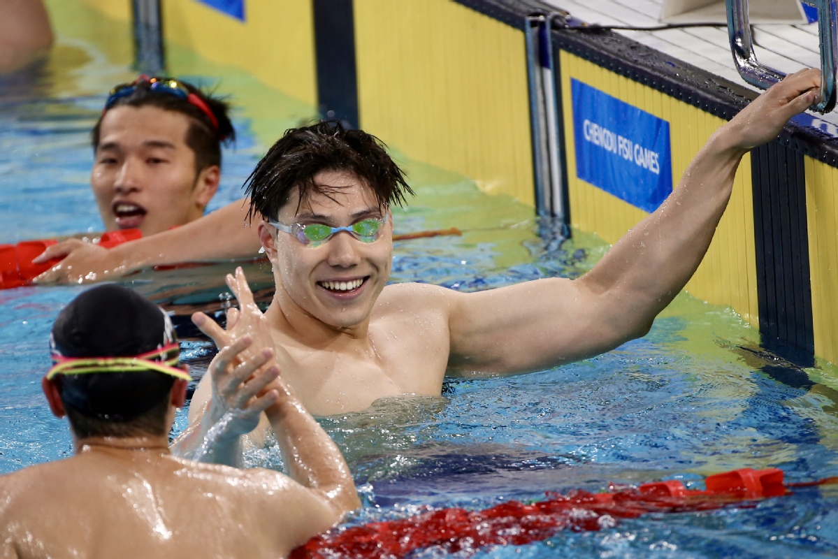 中国日报8月4日电(记者张威)2023年8月4日,在成都第31届世界大学生夏季运动会男子200米蛙泳决赛中,中国选手覃海洋夺得冠军。