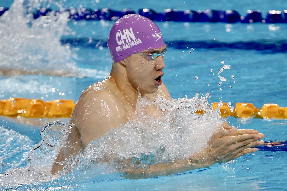 8月4日,中国选手覃海洋在比赛中。中国日报记者张威摄