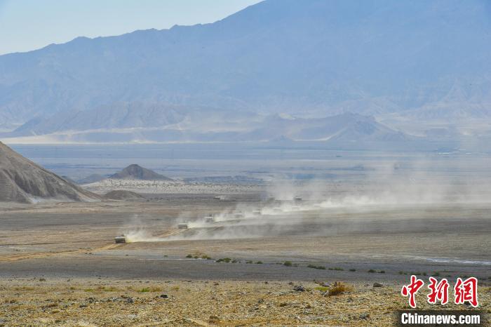 图为演练现场,战车向目标地域快速机动,卷起滚滚黄沙。张勇强摄