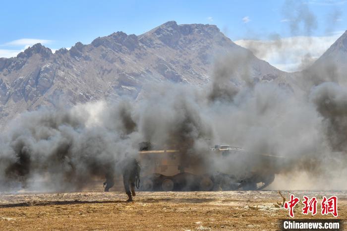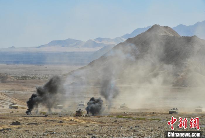 图为演练现场,战车向目标地域进攻。张勇强摄