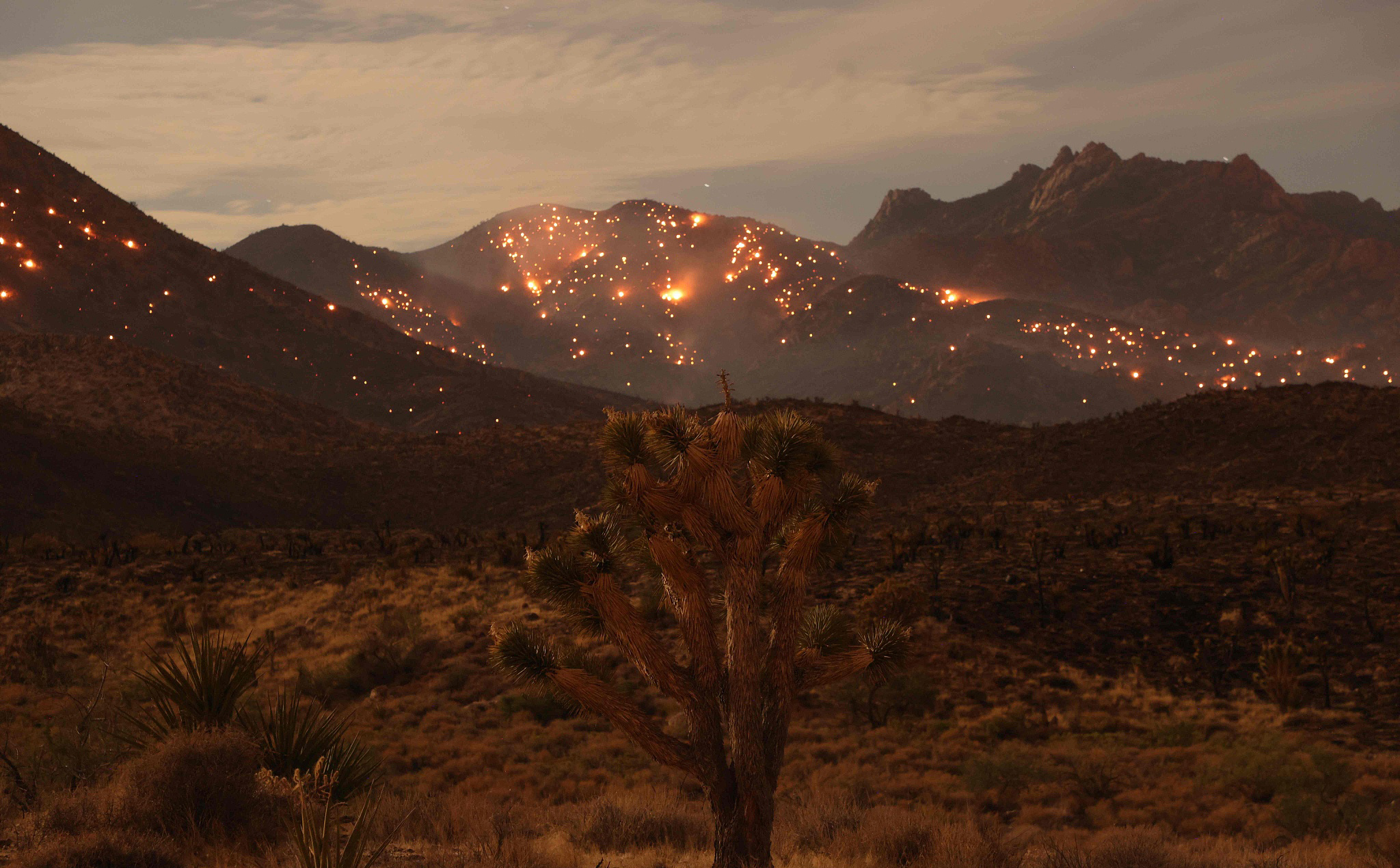 当地时间2023年7月30日,美国莫哈韦国家保护区野火蔓延,已经烧毁超过7万英亩的土地。