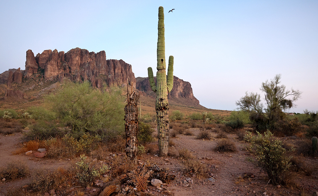 当地时间2023年8月2日,美国亚利桑那州,高温持续,仙人掌正在腐烂。
