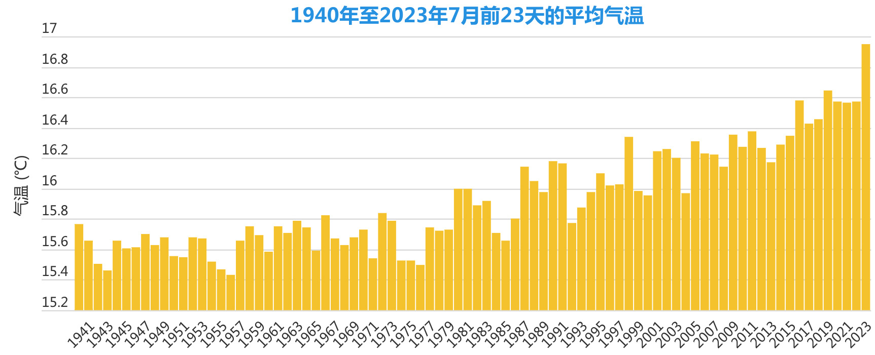 在这个极端炎热的夏季,北半球大部分地区都被酷暑笼罩,对人们的健康和环境造成了重大损害。多地测得的最高温记录被频频刷新。气象组织和欧盟委员会哥白尼气候变化服务中心的科学家们表示,7月的前三周是人类有气象记录以来最热的三周,整个7月很可能会成为有记录以来最炎热的七月,也是有记录以来最炎热的月份。
