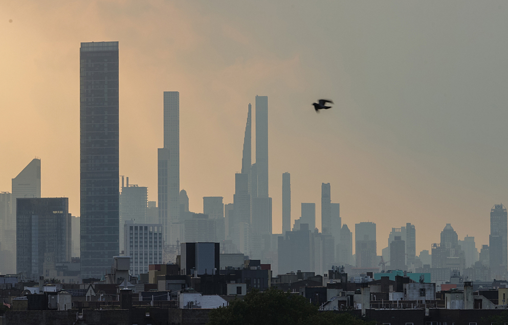 当地时间2023年7月19日,美国,加拿大野火烟雾持续影响纽约空气质量。