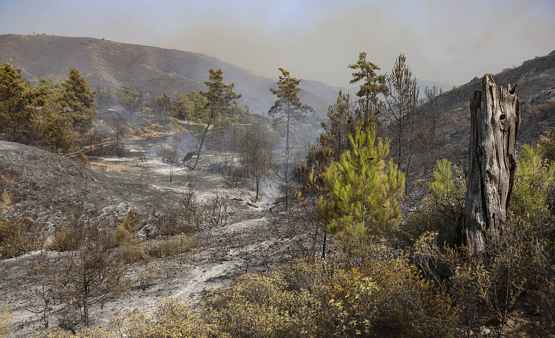 当地时间2023年7月27日,希腊罗德岛山火受灾景象。