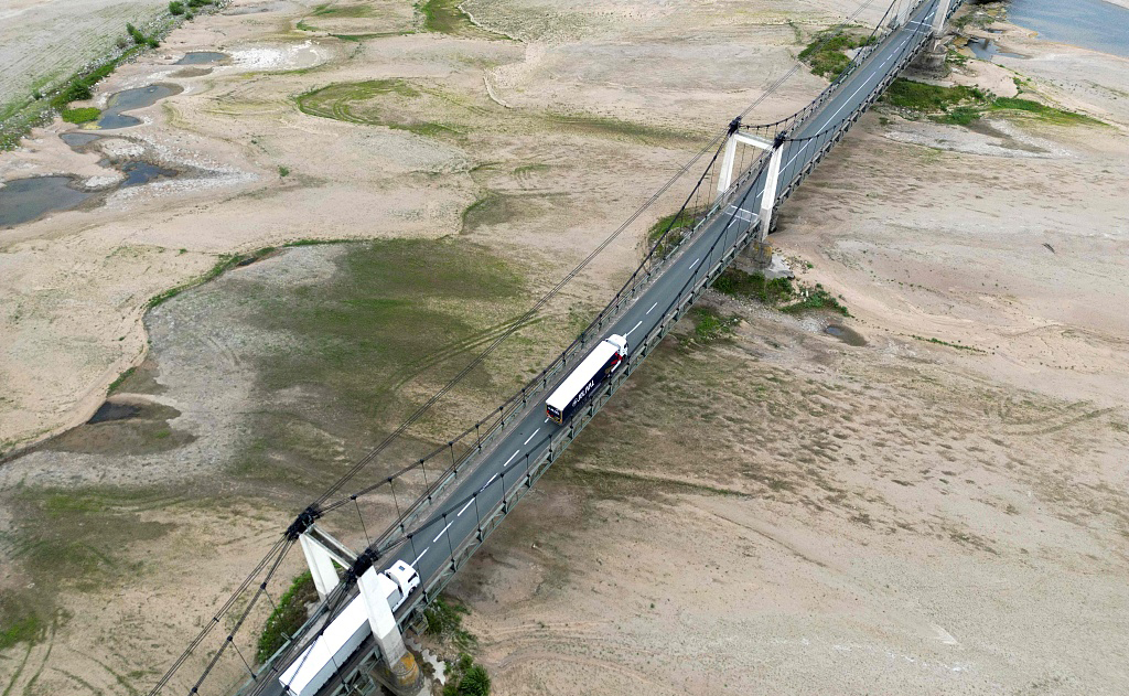 当地时间2023年8月1日,法国曼恩-卢瓦尔,干涸的卢瓦尔河床。