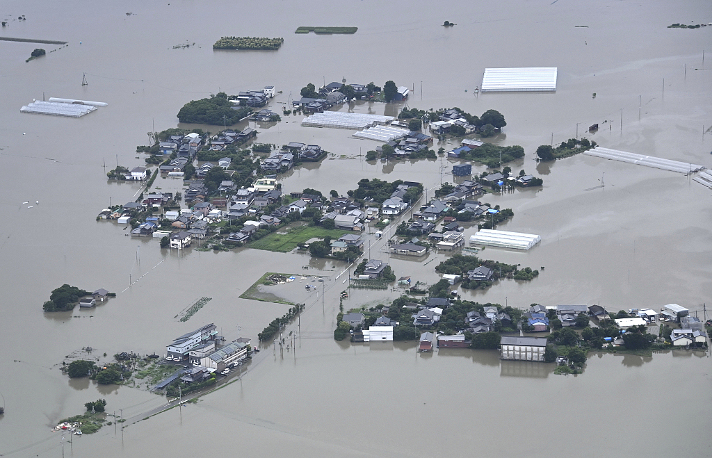当地时间2023年7月10日,日本福冈县久留米市,日本九州等地遭暴雨侵袭并引发洪水和山体滑坡,目前已确认至少造成3人死亡,仍有3人失踪。