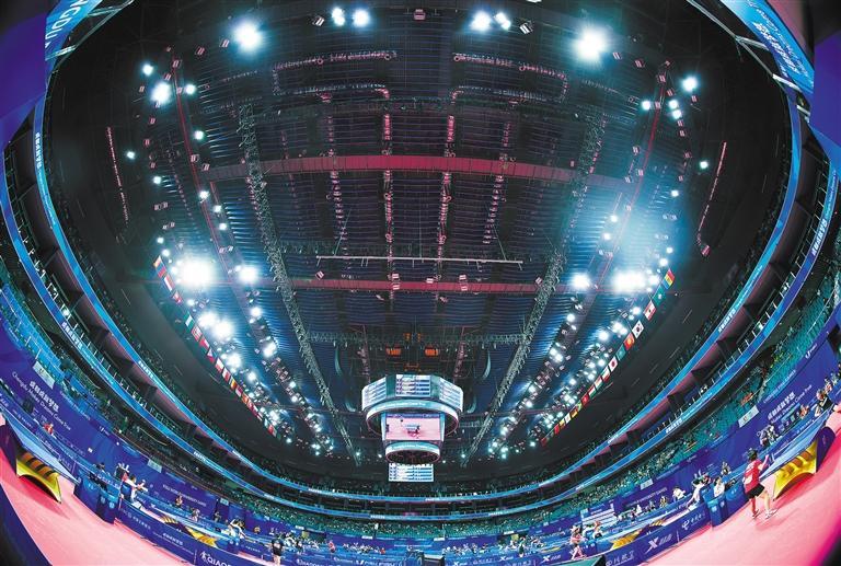 成都高新体育中心多功能馆配有节能灯光灯控、空气对流系统、雨水回用系统、能源管控中心及高科技环保材质座椅,在满足赛事需要的同时也实现了绿色低碳办赛。