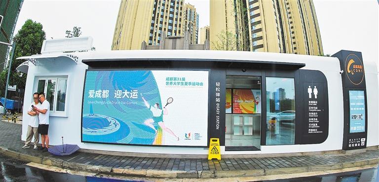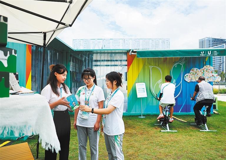 位于成都市高新区的轻松驿站经过融合改造,化身“成都大运会城市志愿服务小站”,充分体现绿色、生态、环保、节约理念。