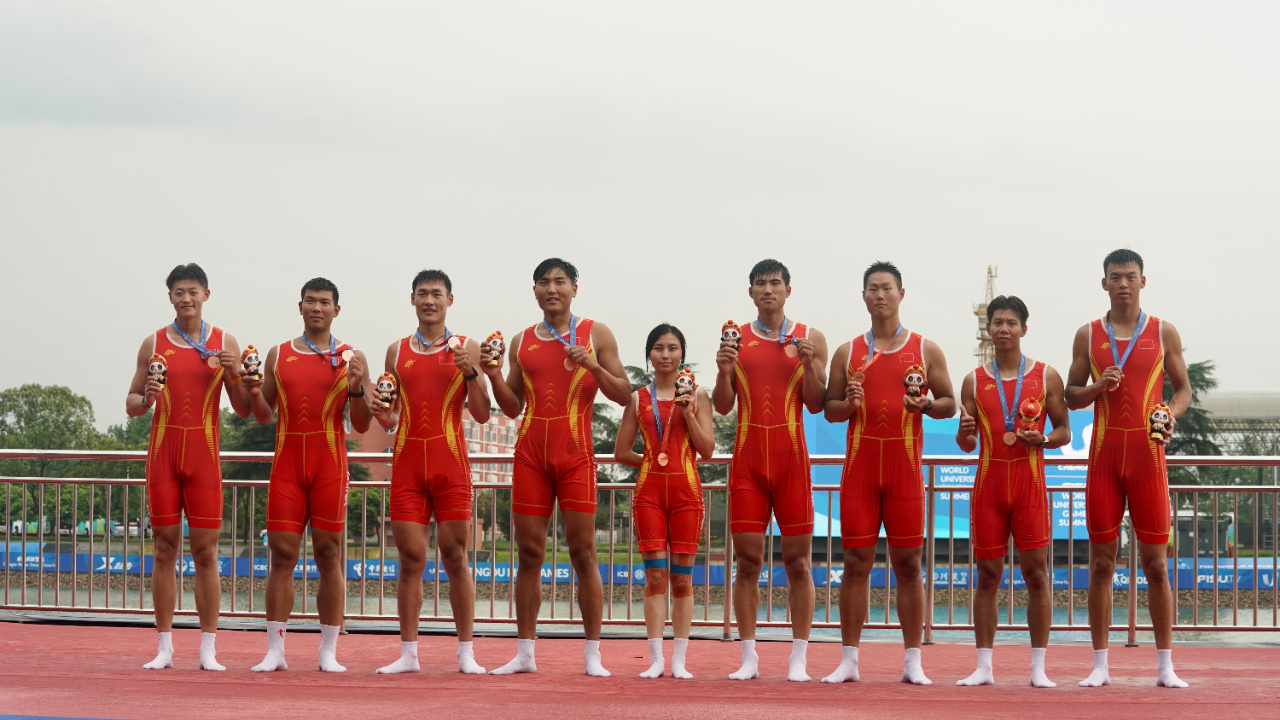 中国队获成都大运会男子八人单桨有舵手铜牌