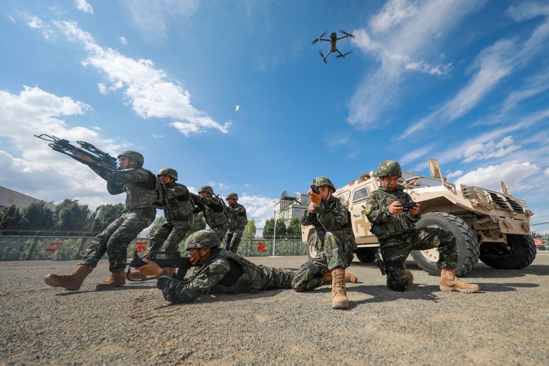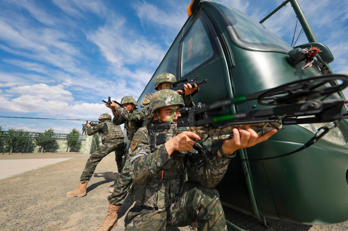 “无人机迅速升空,组长向我靠拢,其余组员就地隐蔽……”抵达“暴恐分子”藏匿区域后,指挥员结合侦察情报部署作战任务,狙击组占领有利地形,突击组随时待命,侦察组密切关注态势……短短几分钟,各战斗小组同时出动,织就一张立体封控网,将“暴恐分子”逼进“决战圈”。