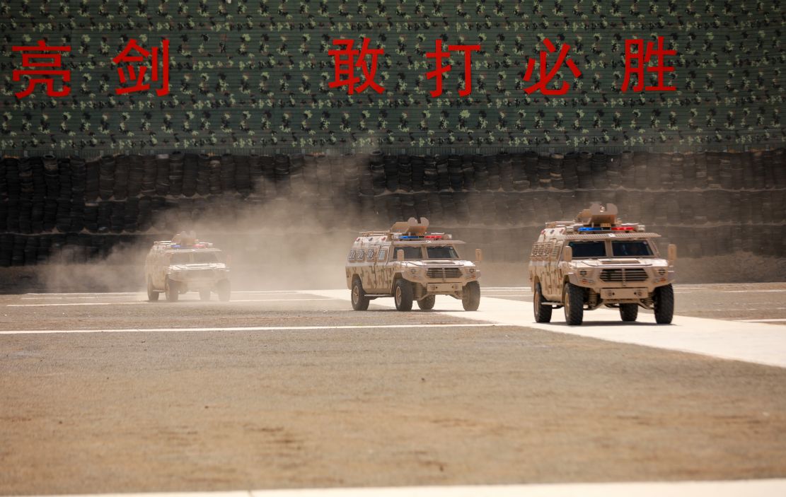 战车轰鸣,热浪滚滚。盛夏午后,西北戈壁油城地表温度达40℃,武警新疆总队克拉玛依支队一场全要素实兵综合演练激战正酣。