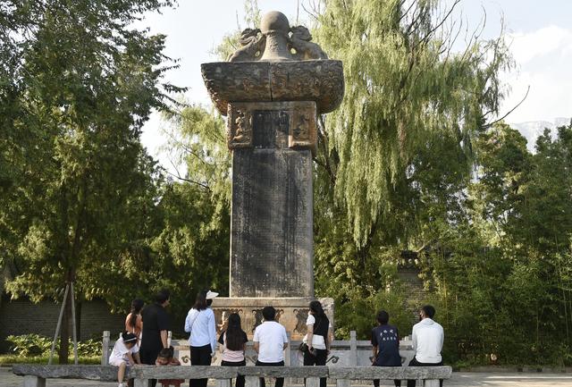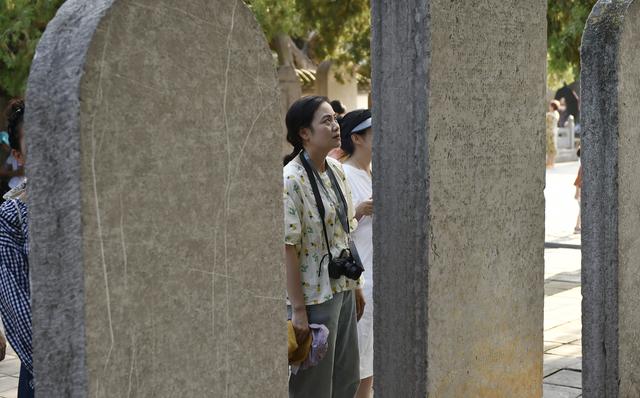8月7日,游人在嵩阳书院内参观“大唐嵩阳观纪圣德感应之颂碑”。新华社记者 鲁鹏 摄