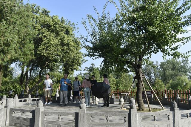 8月7日,游人在嵩阳书院内的“杏坛”参观。新华社记者 鲁鹏 摄