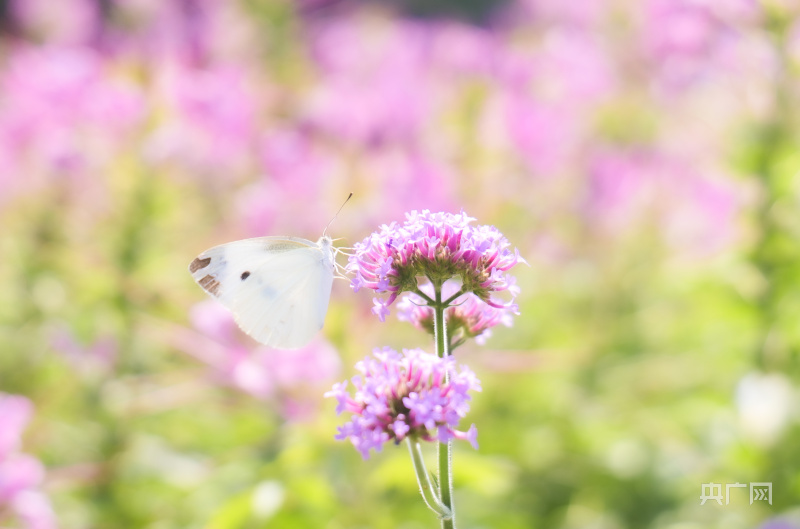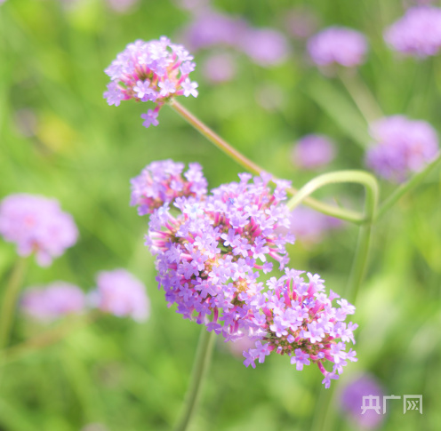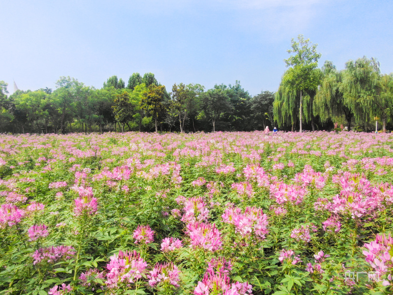 郑州绿博园内的柳叶马鞭草、醉蝶花盛开成一片紫色的花海(央广网发郑州绿博园供图)