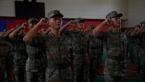 出征前,中方参训分队整齐列队,精神饱满,士气高昂。在出征誓师仪式上,全体参训官兵举起右拳庄严宣誓。