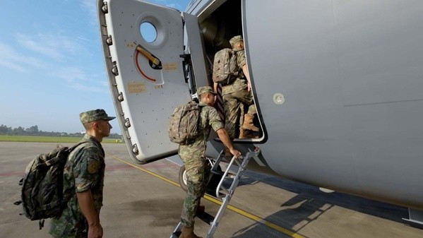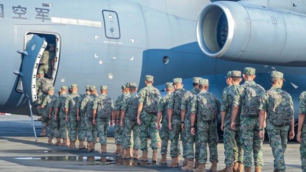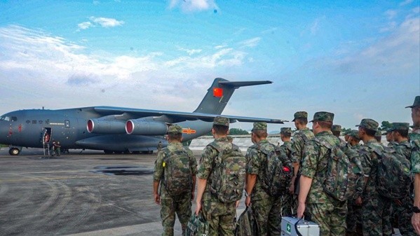 北京时间8月16日上午,参加中泰“突击-2023”陆军联合训练的陆军第74集团军某旅中方参训分队,通过空中输送的方式抵达泰国联训地域。