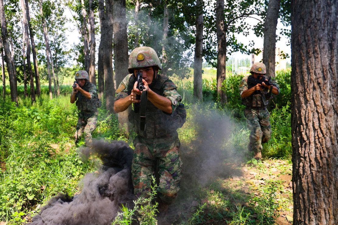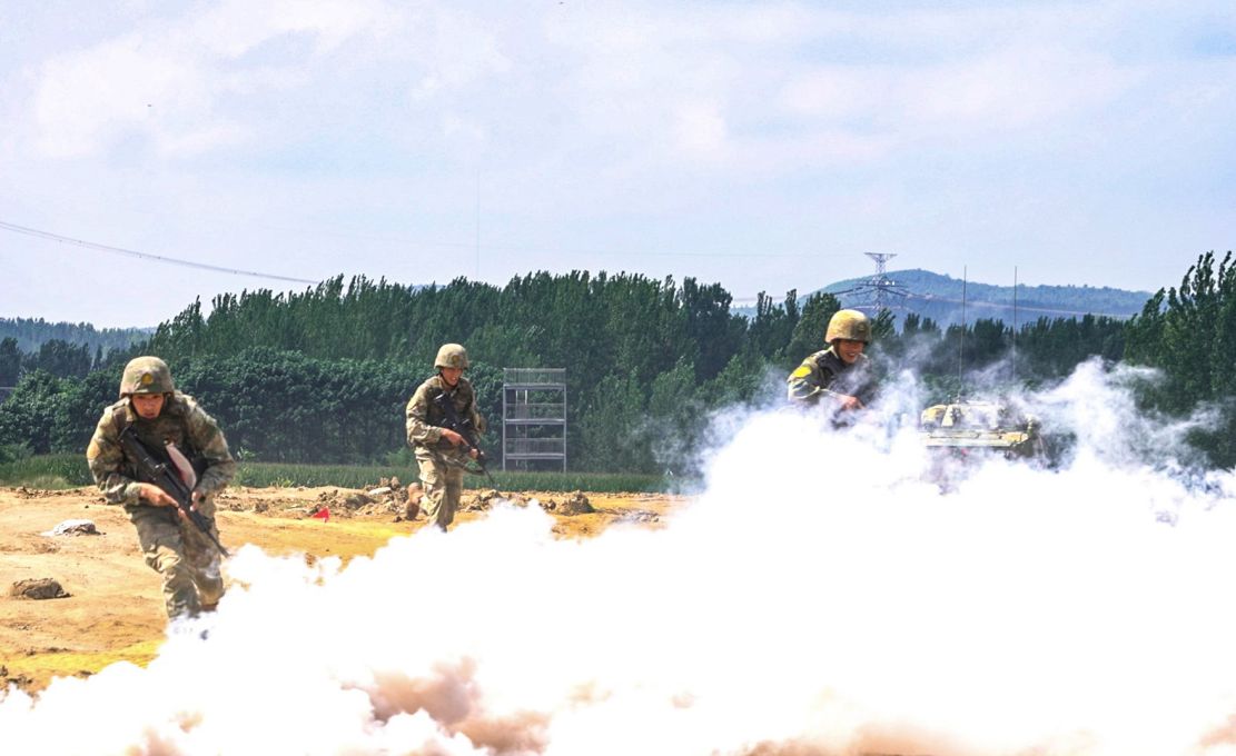 一路疾行,特情不断。遭“敌”突击车重火力压制、右翼小股“敌”袭扰、通过染毒地带……红军指挥员沉着应战、迅速决断,各战斗小组多点行动,向蓝军核心阵地不断抵近。