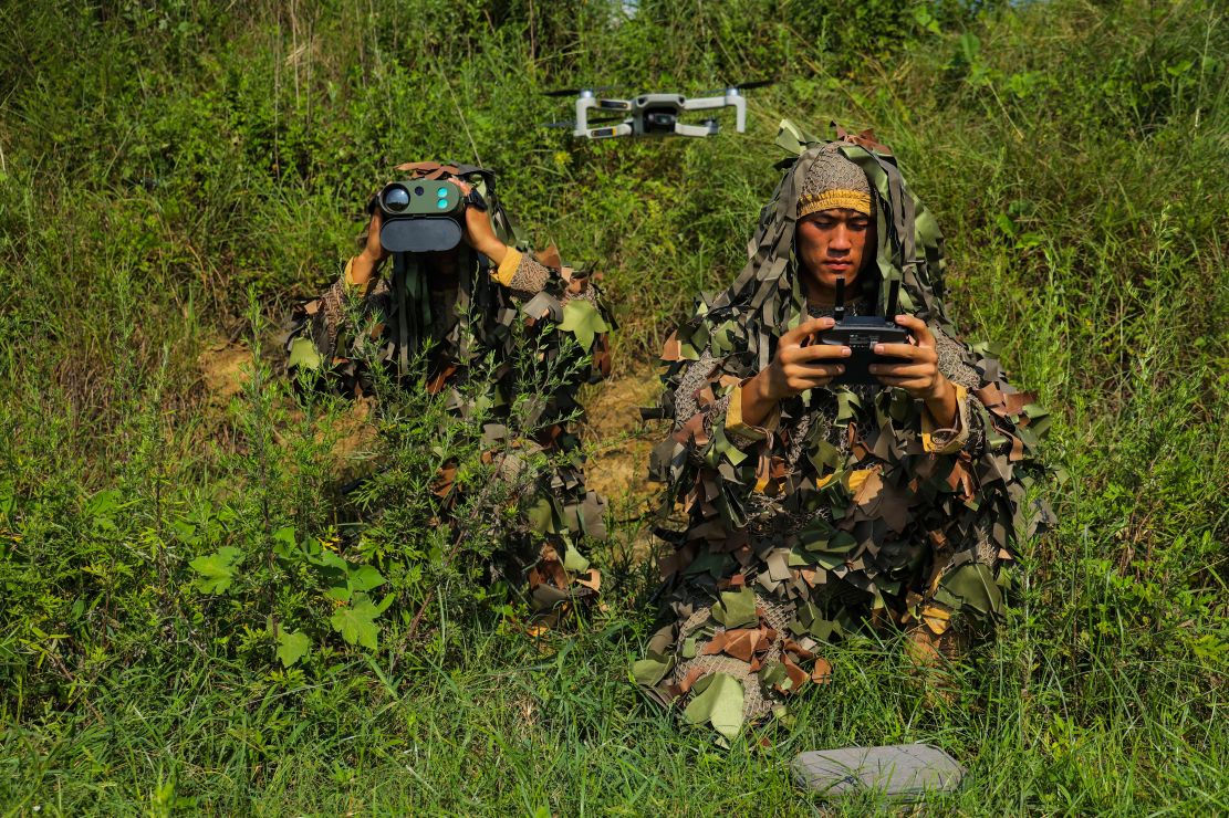 “前方发现敌装甲集群,请求火力打击!”与此同时,密林深处,蓝军侦察班长已悄然抵近红方目标地域,利用无人机对“敌”纵深地域进行侦察,侦获目标信息后,快速上传至指挥中心。