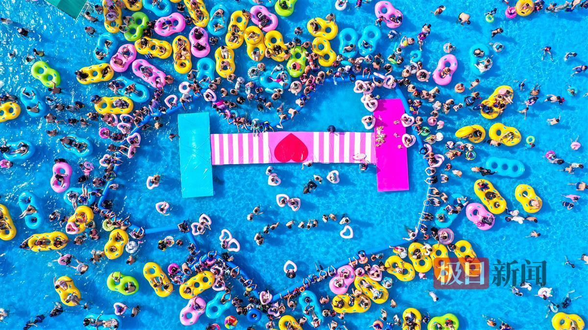 当日,“七夕热爱游”浪漫约会活动在公园水中进行,20对情侣相聚蓝色造浪池,通过多场次的情侣恩爱趣味对决,最后胜出的10对情侣进入水下接吻终极挑战。